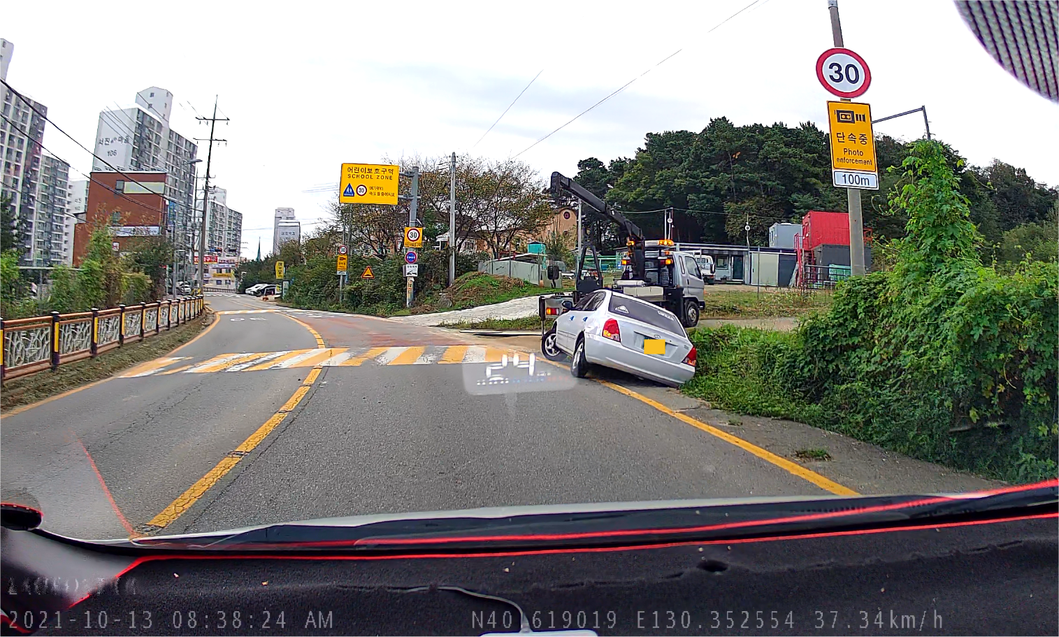 아침 출근길 우리 아파트 근처에서 추돌사고
