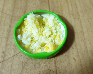삶은 계란 노른자 1개, 설탕 - 2스푼, 붕산 2스푼