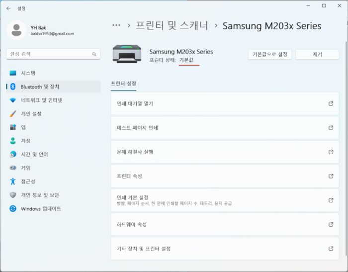 이 때도 설정에서 프린터 제거를 하고 위의 순서대로 다시 설치해주면 된다.