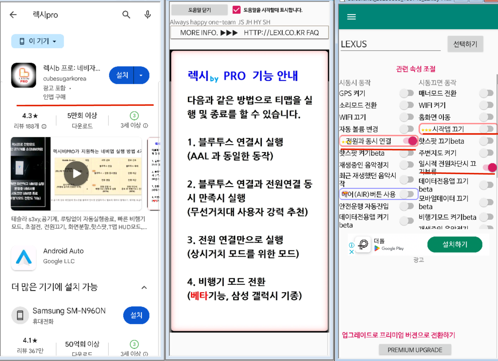 여러가지 자동 실행 앱들이 있지만 "렉시b 프로" 앱을 통한 실행을 소개하고자 한다.