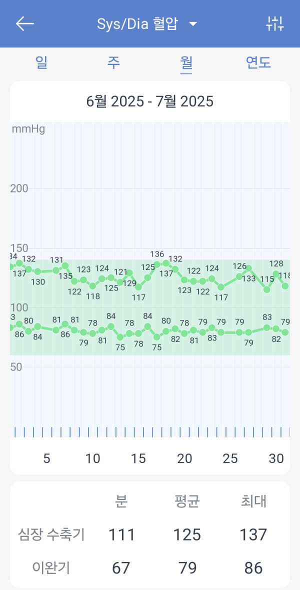 지난 5월까지 수축기 140 전후로 계속 되었었는데