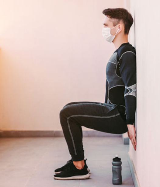 그러다가 벽에 등을 기대어 스쿼터 자세로 무릎이 ㄱ 자 되도록 해서