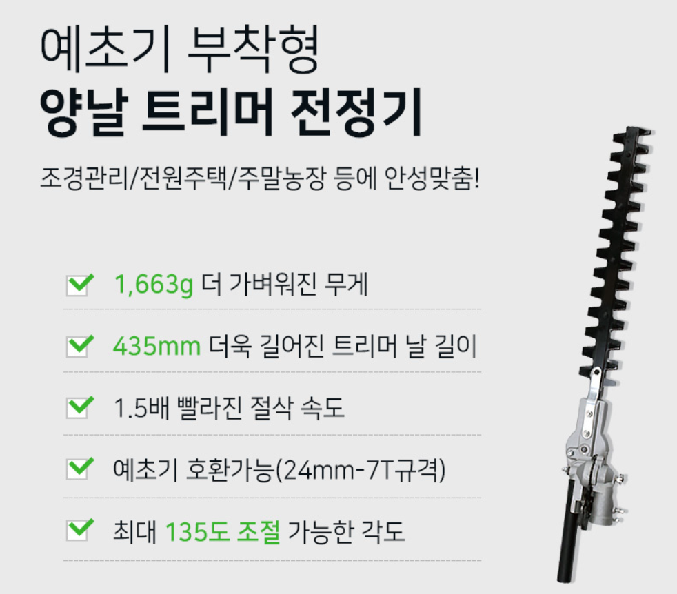 "예초기 부착형 트리머" 트리머 기어뭉치와 날 자체가 무게가 있어